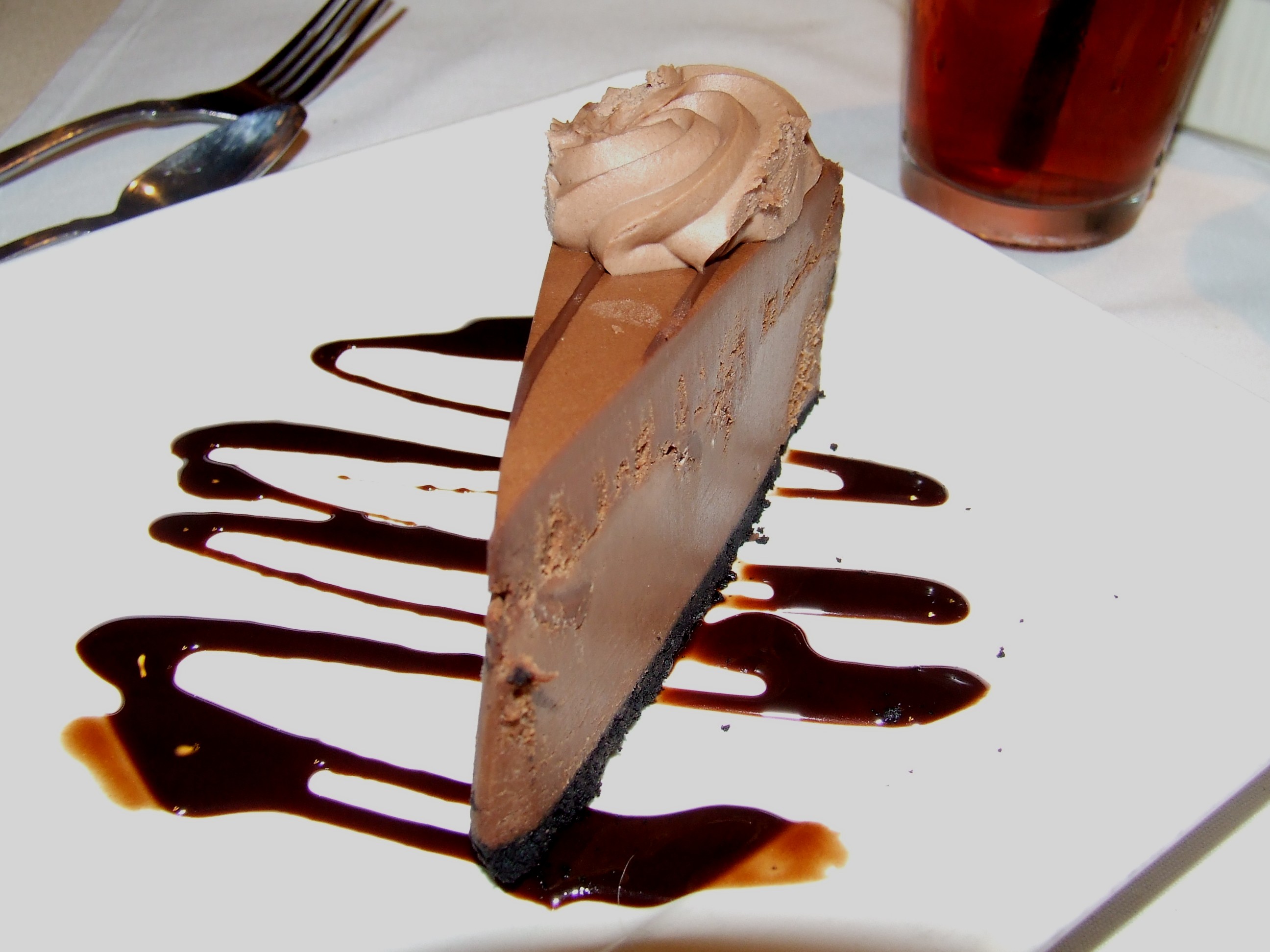Finally it was time for dessert. I sampled all of them (for Science…shut up.) Abby ordered the classic Creme Brulee which I will liken to Justin’s steak in that was really good but nothing beyond like I’ve had elsewhere. Creme Brulee is just kind of awesome in it’s own right. Justin ordered the Apple Walnut Upside Down Pie (he thoughtfully passed on the scoop of cinnamon ice cream because he’s lactose intolerant and had to share a bed with me later). While I thought it was good, everyone else at the table seemed to be more in love with it. MY favorite dessert was the one Aimee ordered: Godiva Triple Chocolate Mousse Cheesecake. This was sex on a plate. Rich, creamy, chocolately & velvety smooth. It’s sized for fighting to the death sharing and was a tremendous way to end the meal.