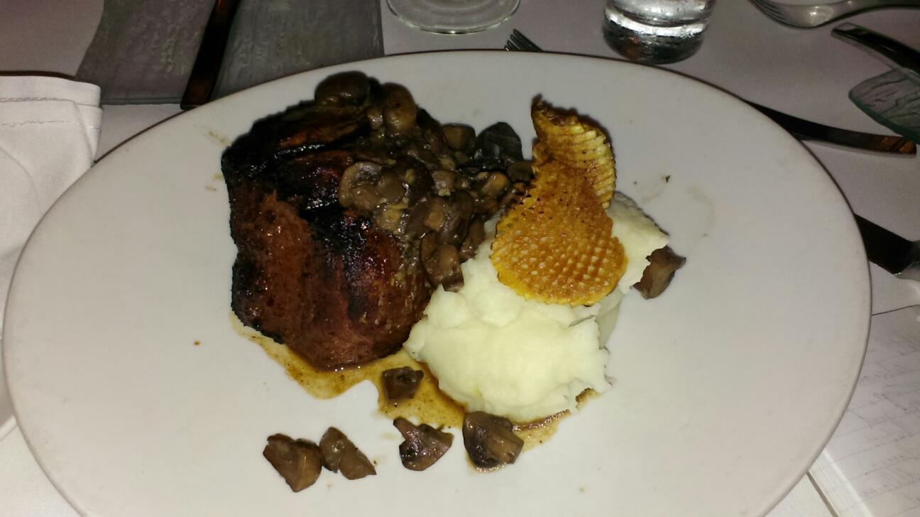 Based on our server’s recommendation, I ordered the Nutella Cookies and Salted Caramel ice Cream for dessert. The cookies were soft and delicious. The ice cream had thick ribbons of caramel throughout. Very tasty dessert, I wouldn’t come here just for it but it was a nice end to my meal. Shannan had the Rose’ poached Pear served with vanilla whipped cream and berries. She loved it. Sweet and delicious with beautiful texture and a striking presentation. David also tried it and was worried about the Rose being too overpowering but found the balance to be really lovely.